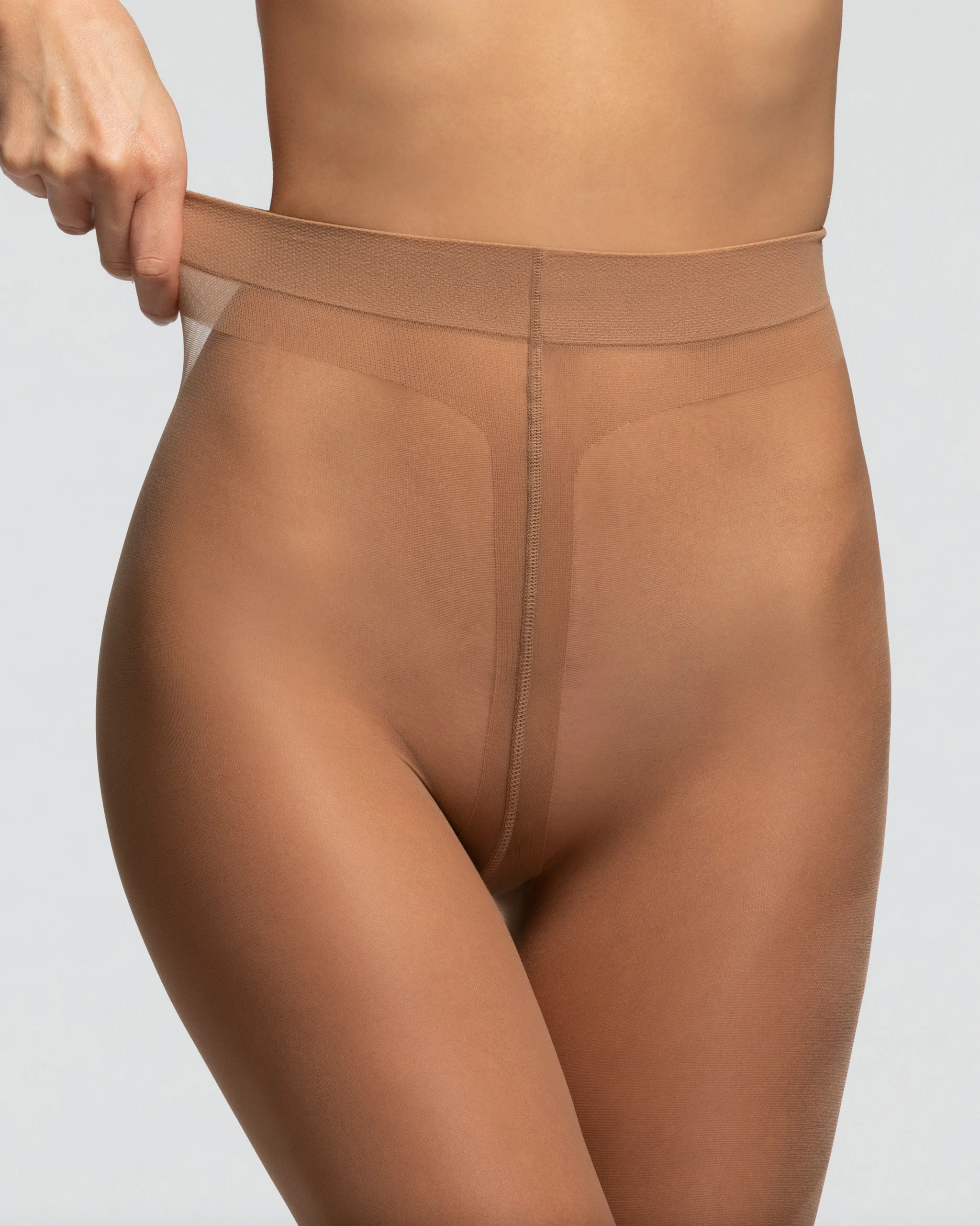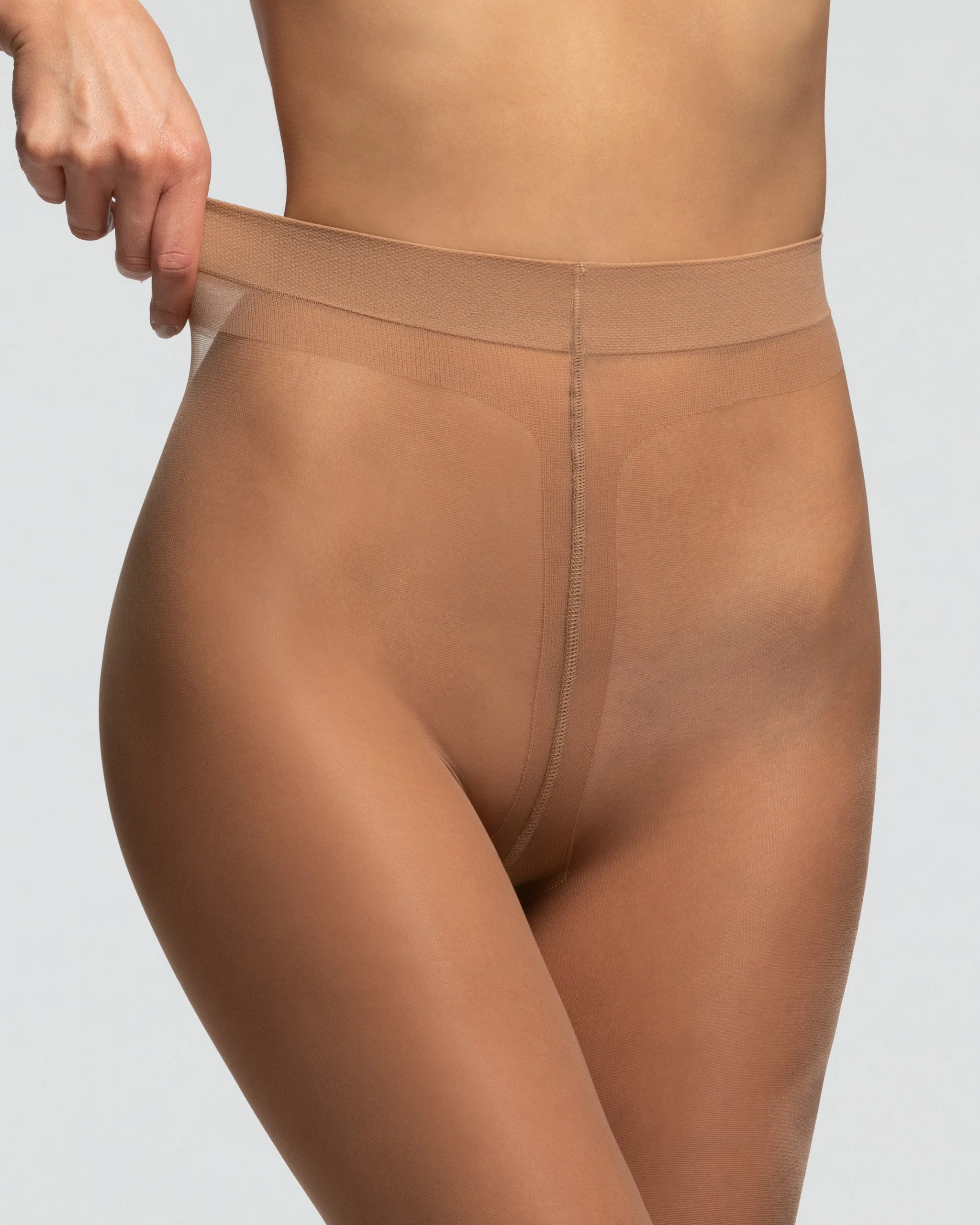 Dresurile COMFORT STUDIO de 20 den au o bandă talie elastică care se adaptează oricărui tip de siluetă și un chilot cu întăritură.