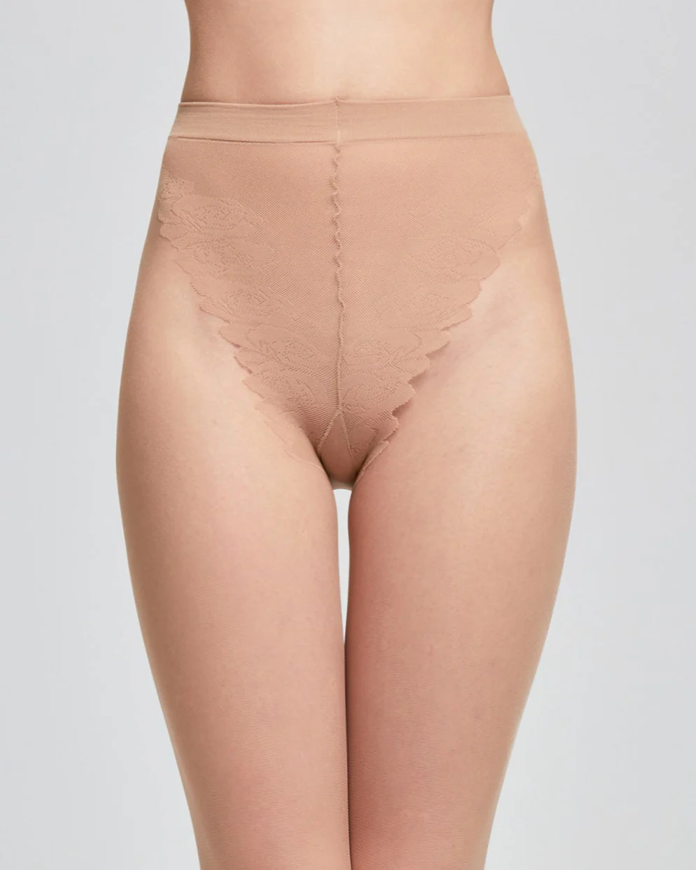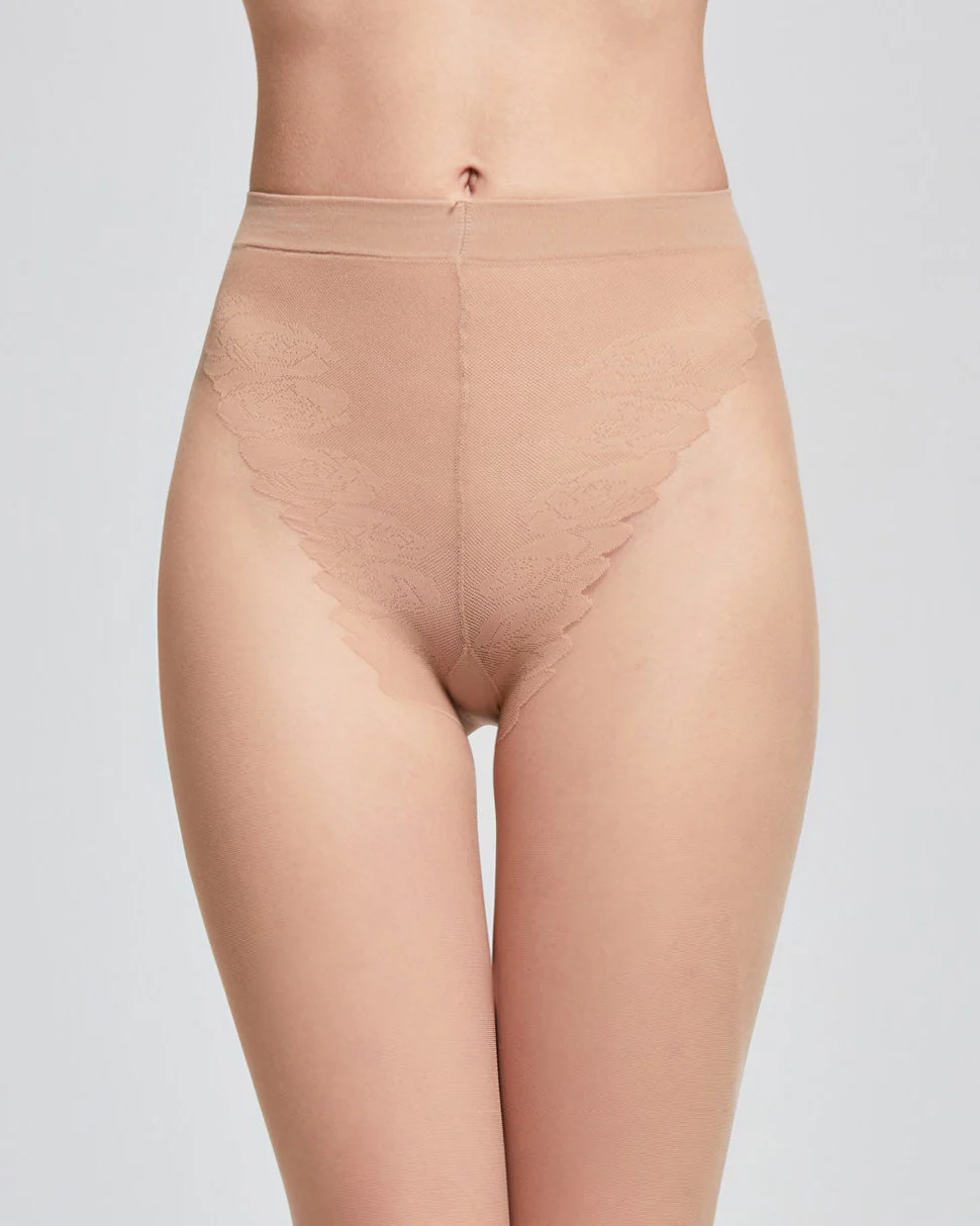 Banda superioară tip bikini are efect de dantelă, cu insert întărit și vârfuri invizibil întărite.