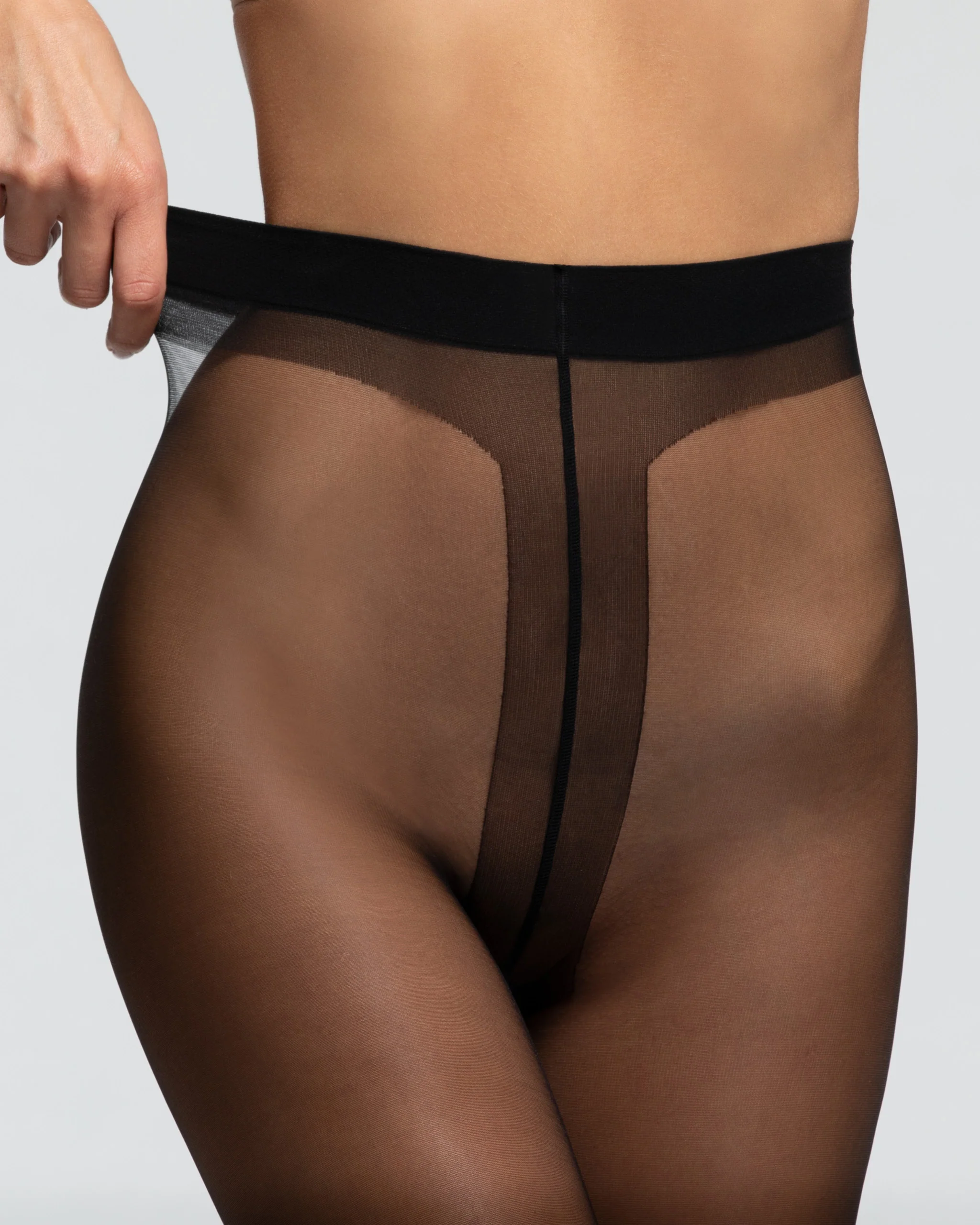 Dresurile COMFORT STUDIO de 8 den au o bandă talie elastică care se adaptează oricărui tip de siluetă și un chilot cu întăritură.