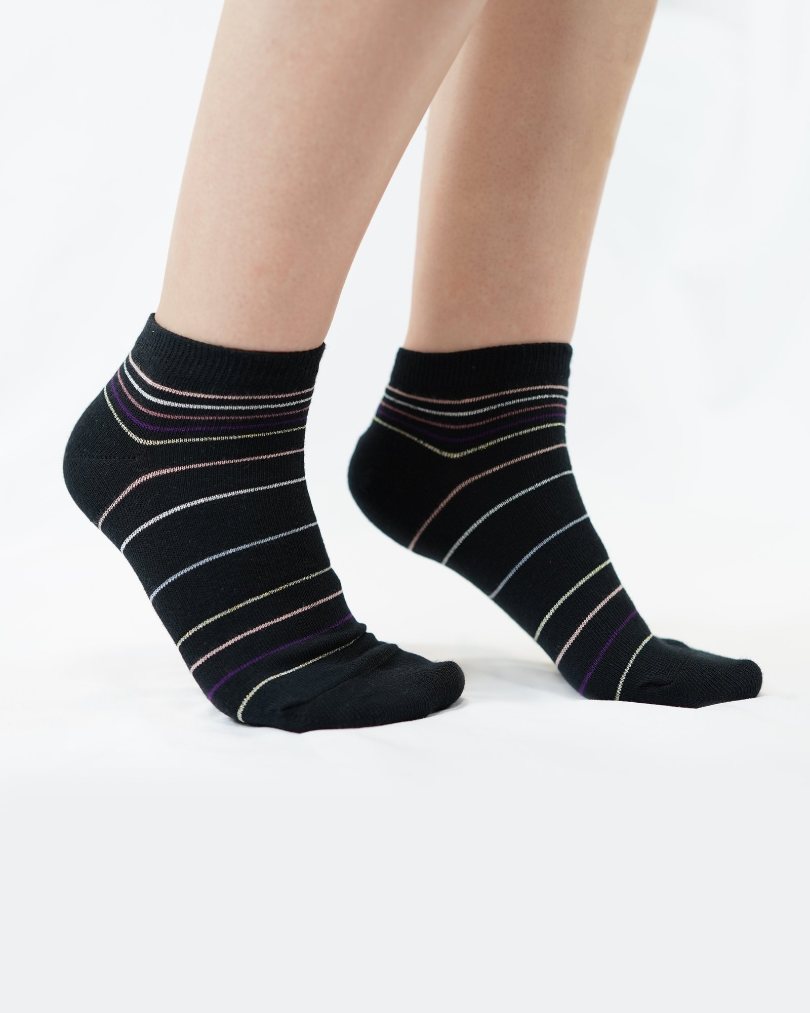 Șosete damă Amaro x2, Mimi (marcă Pompea), negre cu dungi colorate